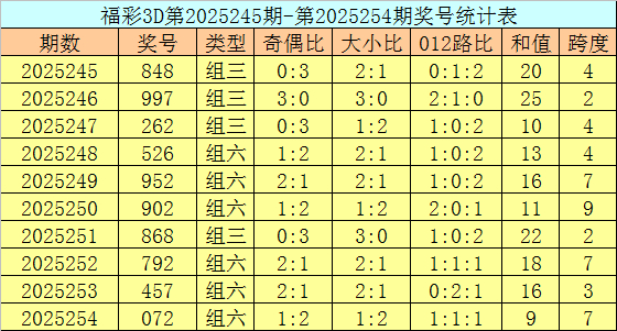 郑飞福彩3D第2025265期推荐: