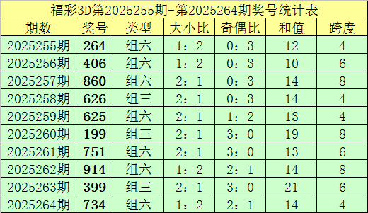 其中大小比1:2,奇偶比2:1,和值14,跨度4。