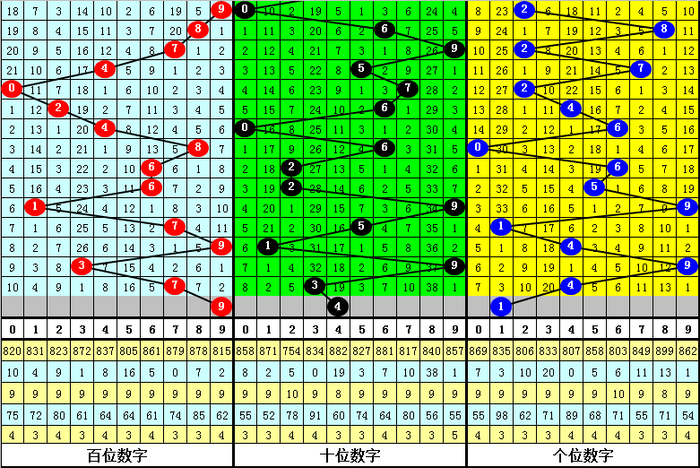 百位分析:上期百位开出奖号:7,最近9期该位奖号大小比为6:3,其中大号6、7出现2次,8、9出现1次,5出现0次,小 号1、3、4出现1次,0、2出现0次,本期百位参考大号,胆码关注9。