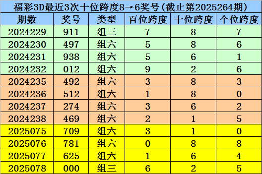 第2025252-第2025254期奖号:792、457、072,其下期奖号为:264,末位号码跨度为2;